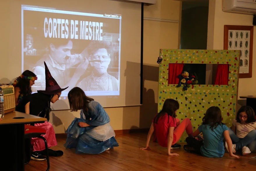 centro estava o Miguel preso com uma corda. Fiz um gesto ao professor António.
